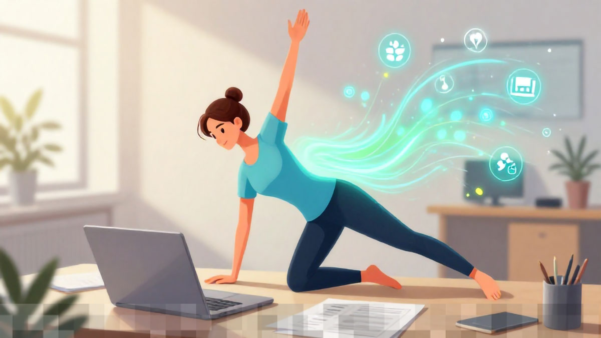 Salah satu cara paling sederhana dan efektif untuk meningkatkan fokus adalah dengan melakukan stretching atau peregangan ringan. Gerakan ini dapat dilakukan di meja kerja Anda tanpa memerlukan alat khusus. Fokus pada area tubuh yang sering mengalami ketegangan akibat duduk terlalu lama, seperti leher, bahu, punggung, dan pergelangan tangan.